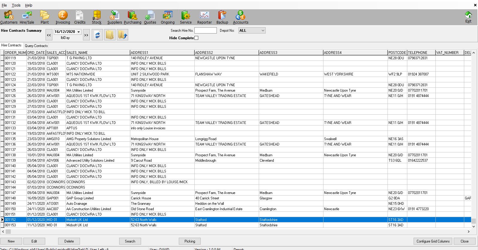 Our hire software can be configured to work with a range of different hire businesses, such as plant hire, tool hire, cabin hire, toilet hire, lifting gear and site access equipment.
